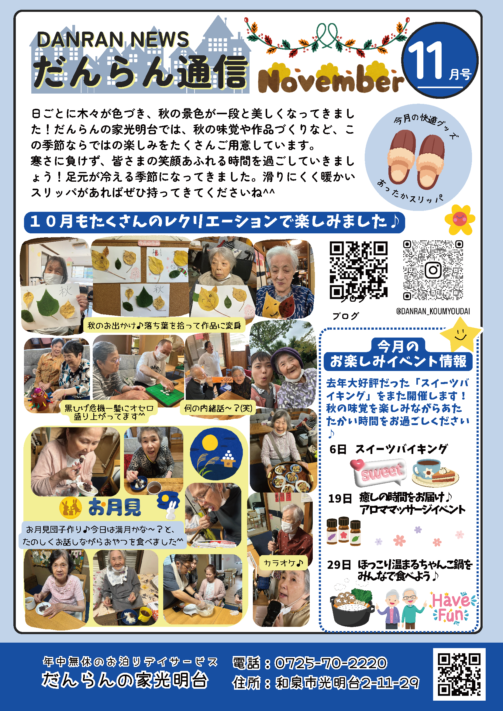 さて、だんらんの家光明台では「だんらん通信 11月号」を発行いたしました!